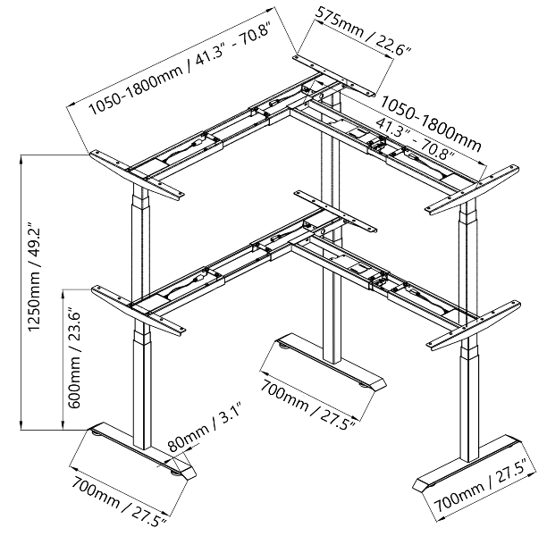 Adjust Height | 600-1250mm/23.6"-49.2" |