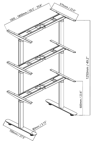 ضبط الارتفاع | 600-1250mm/28.3"-47.2" |